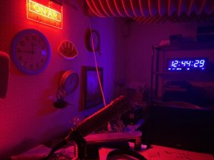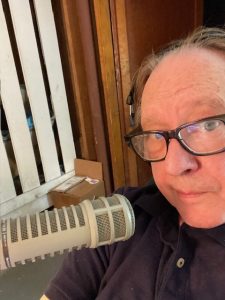 Inside the laundry room studio.Walter’s classic RCA 77D ribbon microphone.The MAN…Walter M. Sterling!Walter standing by in his laundry room studio, preparing to go “live.”